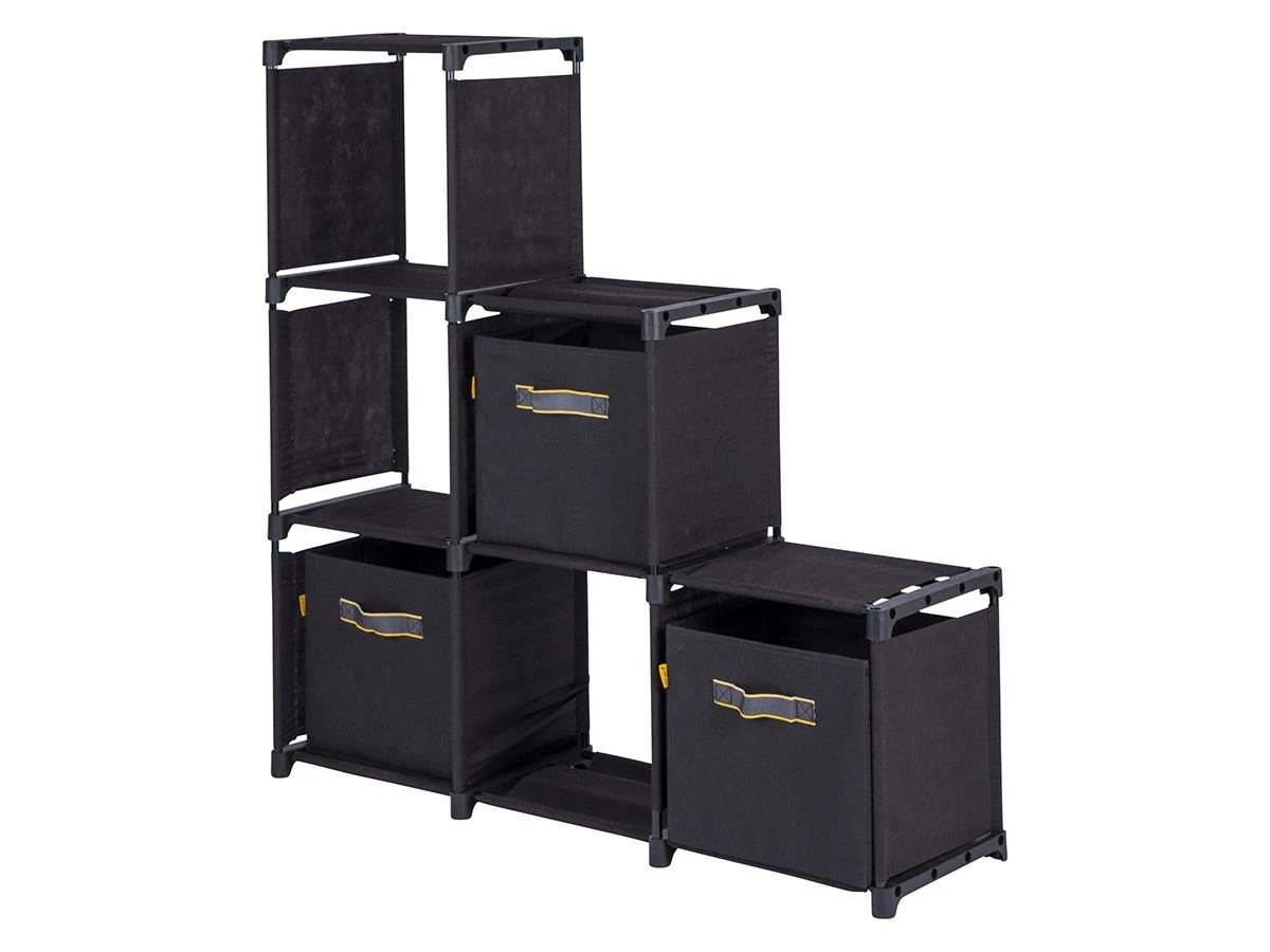 Kies voor een lage rechthoekige vakkenkast, een hoge smalle vakkenkast of bouw de kast trapsgewijs op waardoor je hem ook tegen een schuine kant aan kunt plaatsen. Ideeën en mogelijkheden genoeg met deze zwarte industriële vakkenkast.
