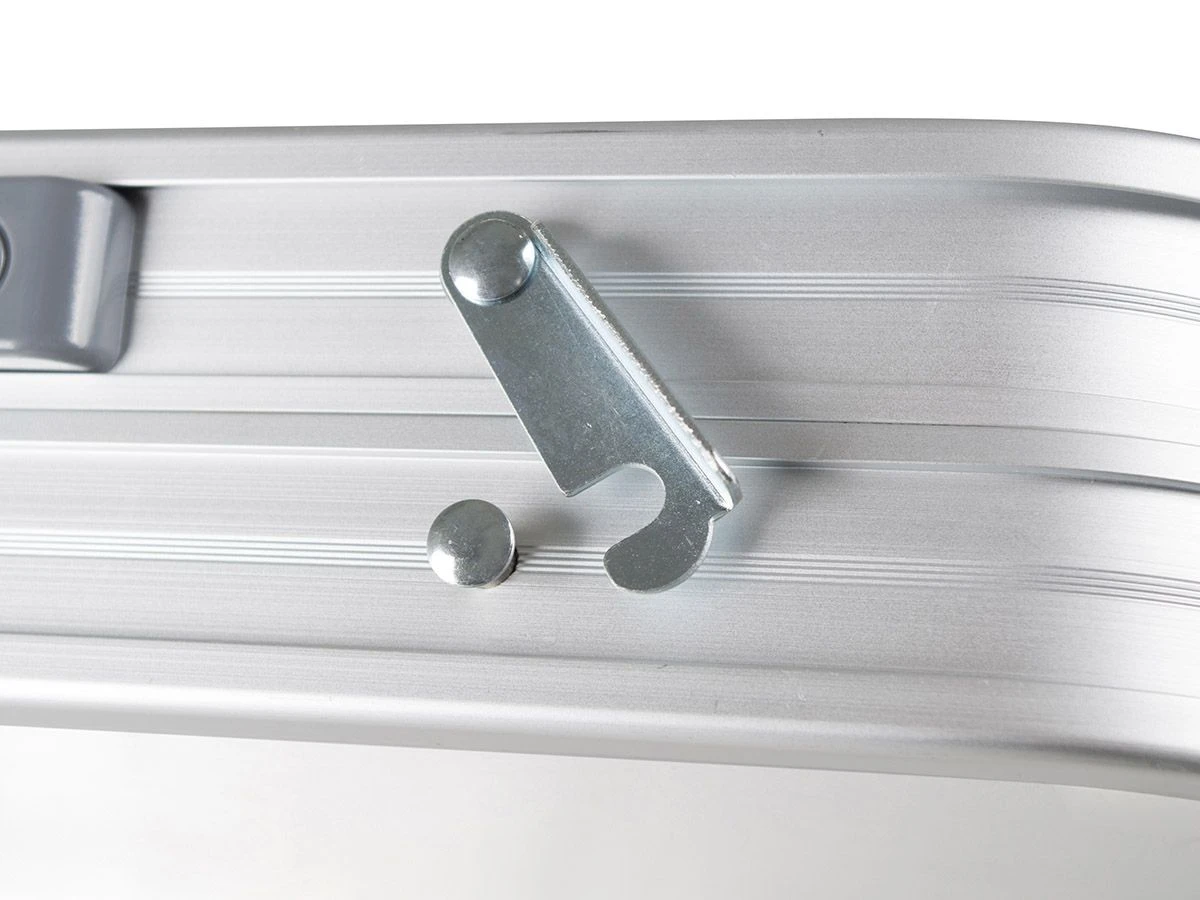 Deze compacte tafel van Bo-Camp kun je eenvoudig mee nemen doordat hij is in te klappen tot een handig koffermodel. De tafel heeft uitgeklapt een afmeting van 90 x 60 cm en is verstelbaar in vier verschillende hoogtes (36/50/67/81 cm). Alle vier de poten zijn voorzien van stelschroeven voor de fijnafstelling. Onder het blad zit een handig lectuurnet zodat je altijd je boek of tijdschrift in de buurt hebt.