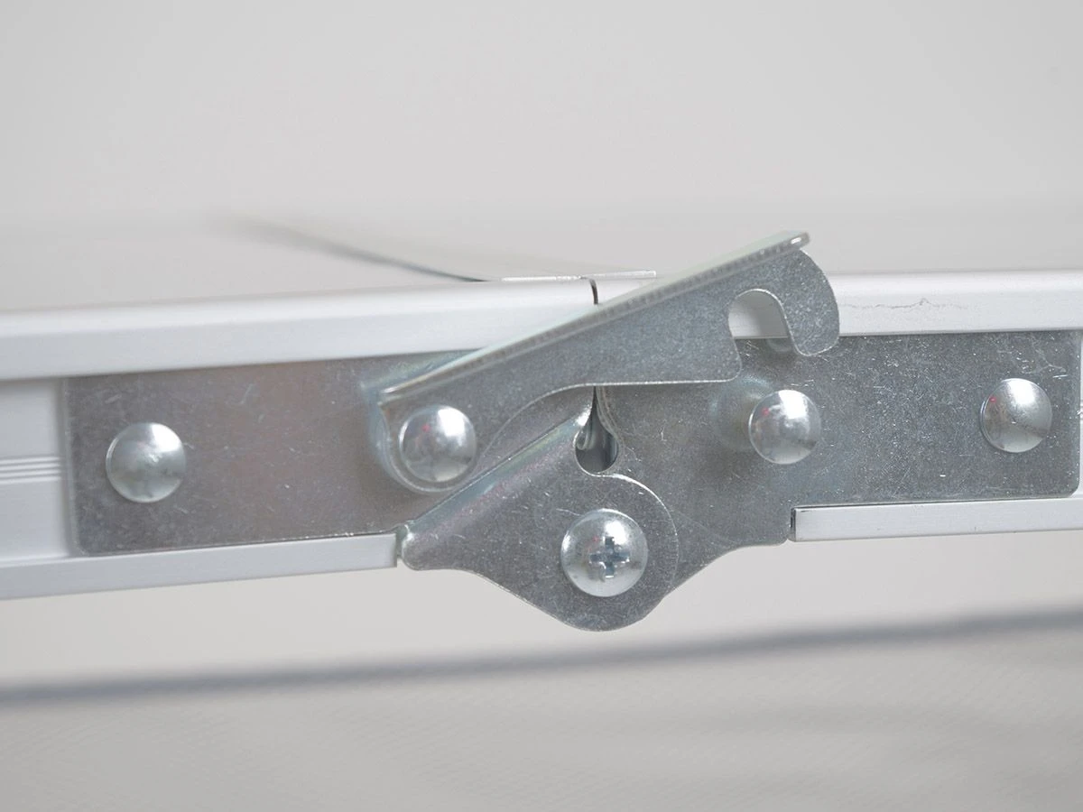 De tafel is voorzien van een lichtgewicht aluminium onderstel en een aluminium blad. De tafel is dus water- en hitte bestendig!