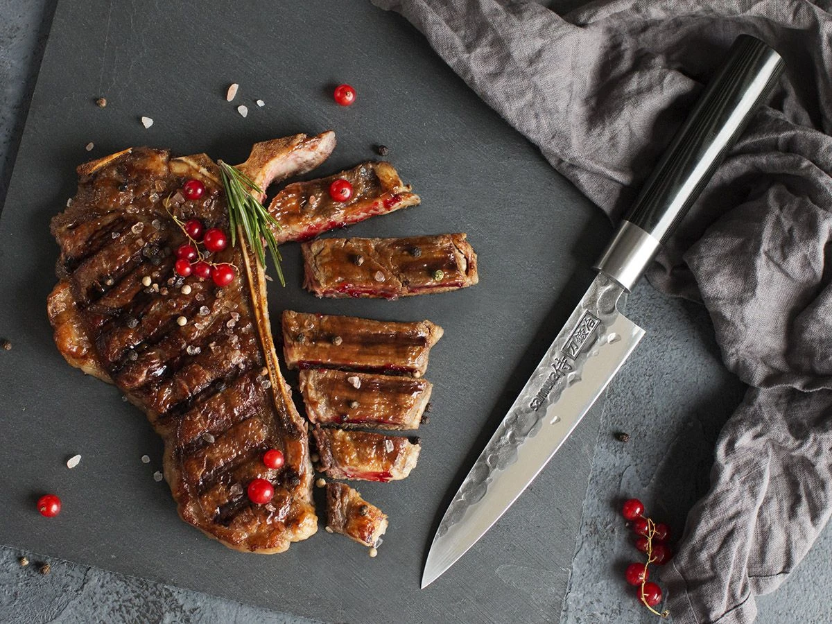 Vlees, vis, groente en fruit snijden gaat het beste met een goed mes. De Blacksmith messenset bestaat uit een universeel mes van 30,5 cm, een Santoku mes van 32,5 cm en een Nakiri mes van 30,5 cm. Een prachtige set dat mooi staat in iedere keuken en het snijden tot een feestje maakt.