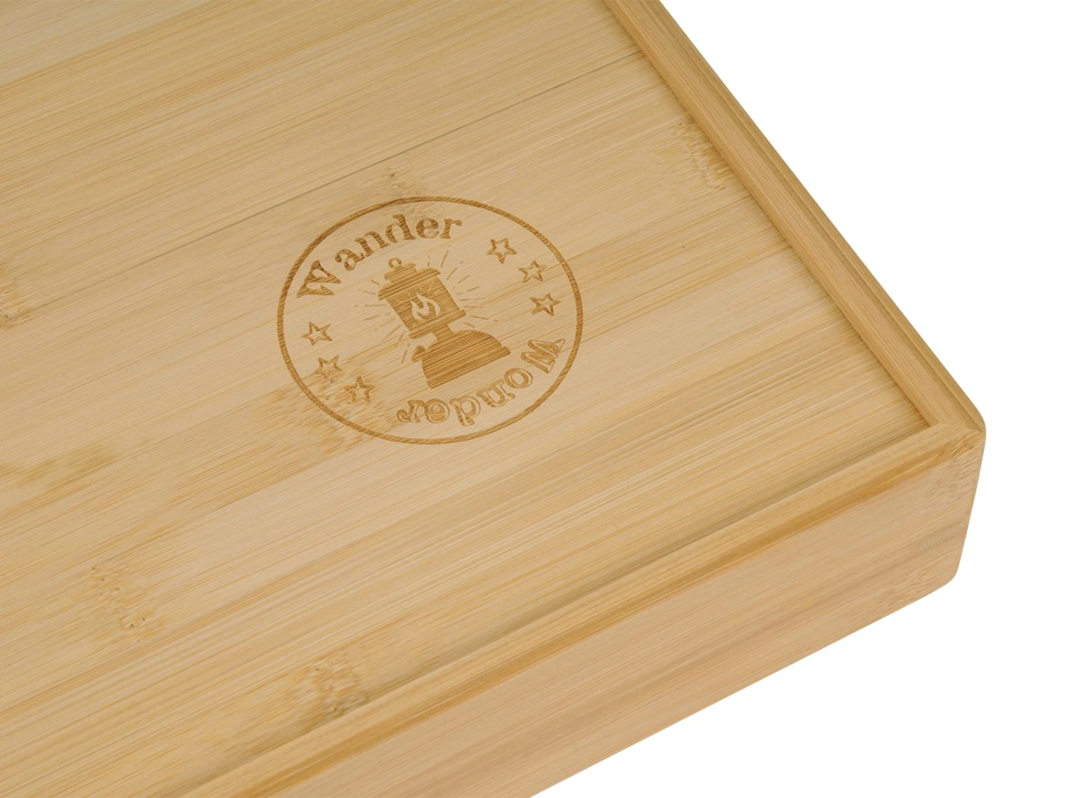 En het oplegblad is los ook te gebruiken als dienblad. Je kunt deze Wander Wonder viskruk dus op meerdere manieren gebruiken en dankzij het bamboe oplegblad is dit een echte eyecatcher voor op de camping!