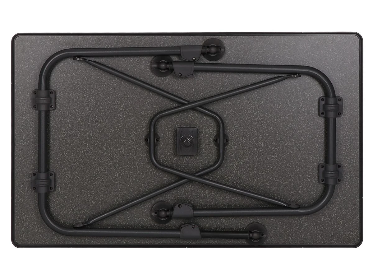 Het tafelblad is water-, hitte-, UV- en krasbestendig, je kunt dus je kooktoestel erop gebruiken of de tafel buiten in de regen of zon laten staan.